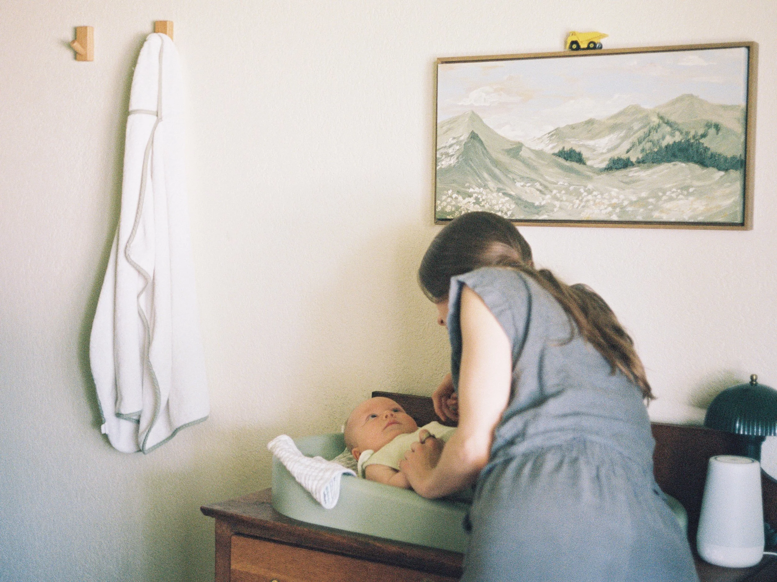 AlyJo added her mountainside painting above Baker’s changing table, a place she sees throughout her days of becominging a new mom.